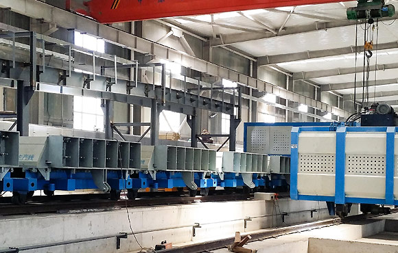 可調的雙T板鋼模具在客戶工廠順利投產。瑪納公司是《預制混凝土構件鋼模板》標準(JG/3032-1995)的主編單位之一,長期致力于預制構件成型設備的研發與制造。公司生產的雙T板模具結構合理、精度高、耐用性強。預應力混